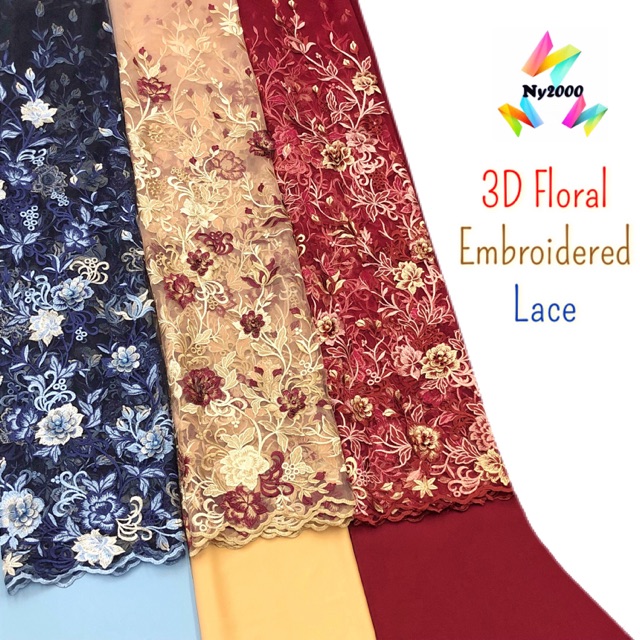 Exclusive 3d Floral Embroidered Lace Plain Lining Fabrics Wedding Floral Lace Set Kain Lace Dan Kain Lining Plain Shopee Singapore
